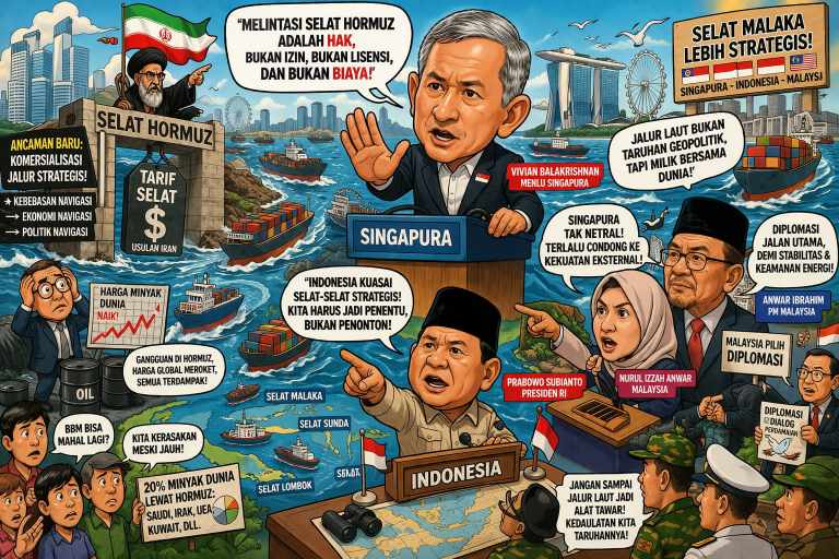 Marhaenist.id, Singapura — Menteri Luar Negeri Vivian Balakrishnan menegaskan bahwa negaranya tidak akan bernegosiasi dengan Iran untuk meminta izin ataupun membayar tarif demi melintasi Selat Hormuz di kawasan Teluk Persia.