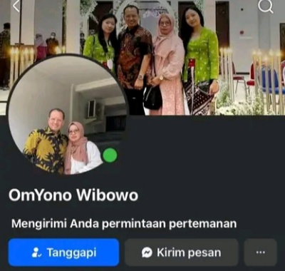 Diketahui, Akun Facebook Palsu yang mengatasnamakan Karyono Wibowo menggunakan nama akun @OmYono Wibowo, sementara akun resminya atas nama @Karyono Wibowo.***