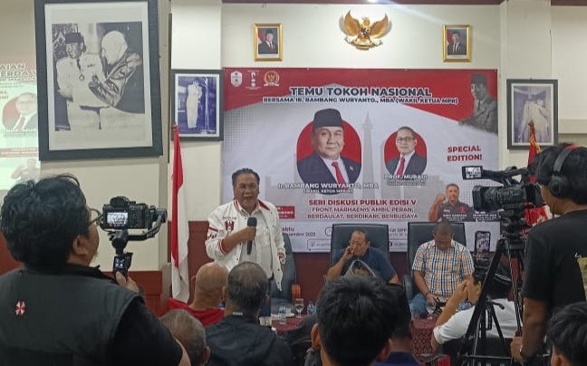 Diskusi menghadirkan dua narasumber penting, yakni Wakil Ketua MPR RI sekaligus kader GMNI, Bambang “Pacul” Wuryanto, dan Guru Besar Ilmu Politik Universitas Padjadjaran, Prof. Muradi. Acara berlangsung interaktif dengan partisipasi alumni dan kader GMNI dari berbagai wilayah di Jakarta.