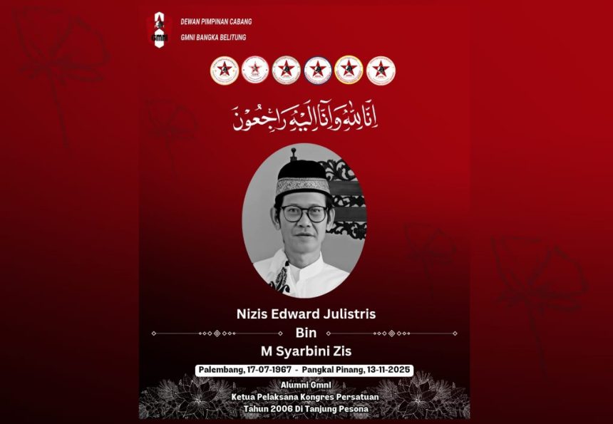 Marhaenist.id, Bangka Tengah – Kabar duka kembali menyelimuti Keluarga Besar Alumni Gerakan Mahasiswa Nasional Indonesia (GMNI). Setelah belum lama ditinggal mendiang Antasari Azhar, mantan Ketua KPK yang tutup usia pada Sabtu, (8/11/2025) lalu, hari ini Kamis, (13/11/205), satu lagi kader terbaik GMNI atas nama Nizis Edward Julistris berpulang ke pangkuan Tuhan Yang Maha Esa di usia 58 tahun.