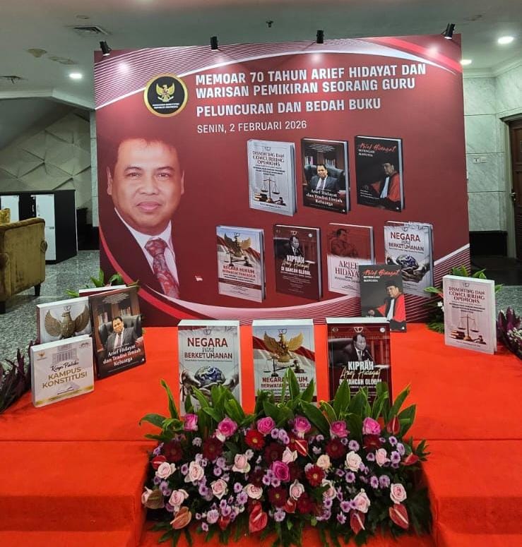 Marhaenist.id, Jakarta — Hakim Mahkamah Konstitusi Prof. Dr. Arief Hidayat, S.H., M.S. meluncurkan tujuh buku sekaligus dalam acara Peluncuran dan Bedah Buku “13 Tahun Mengabdi sebagai Hakim Konstitusi”, yang digelar di Aula Gedung 1 Mahkamah Konstitusi, Jakarta, Senin (2/2/2026).