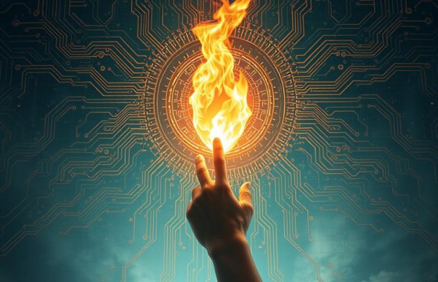 Dengan demikian, Promethean gesture yang kita pahami kini bukan hanya pencurian api, melainkan penciptaan api buatan (Teknologi), selain api ini dapat menerangi, ia pun bisa merupakan cahaya manipulatif menuju titik kematian bersama (nir-eksistensi/matinya fungsi kehidupan). Selain ia menjanjikan keabadian, tetapi juga mengandung potensi kehancuran total. Ia membuka kemungkinan Life 3.0, tetapi juga membuka jalan menuju “final solution” epistemik. Dan seperti Prometheus yang dirantai, manusia kini melanjutkan kutukannya sendiri, mengubur Tuhan yang telah mati, dengan membangkitkan Tuhan baru matematis (Gereja Universal Algortima), dengan bahasa algoritma matematis sebagai sumber wahyu universal.